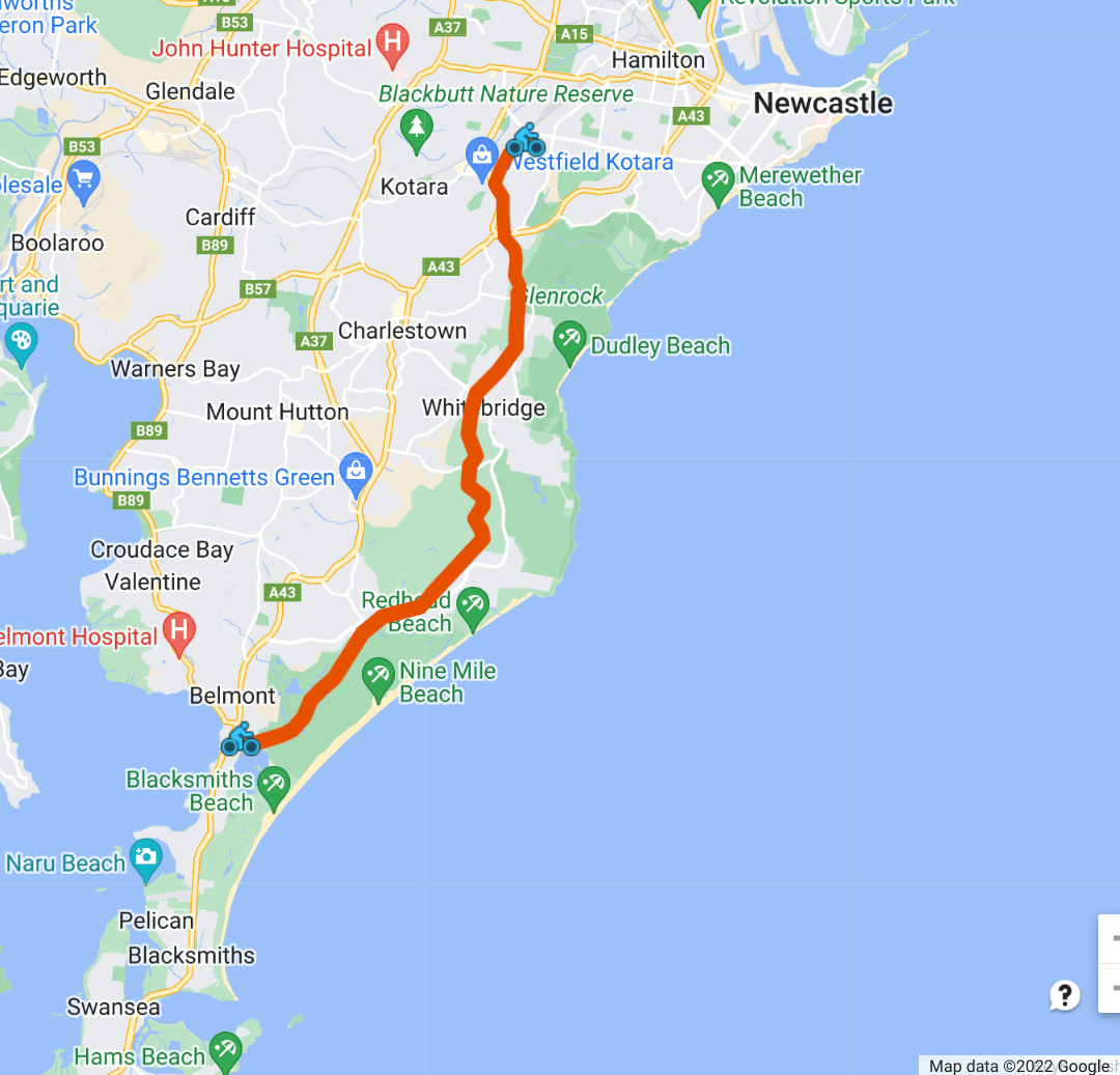 And the signs along the track tell you where you are and where the off roads lead to. It’s handy if you’re looking for a cafe or one of the beaches that are close by such as Redhead.